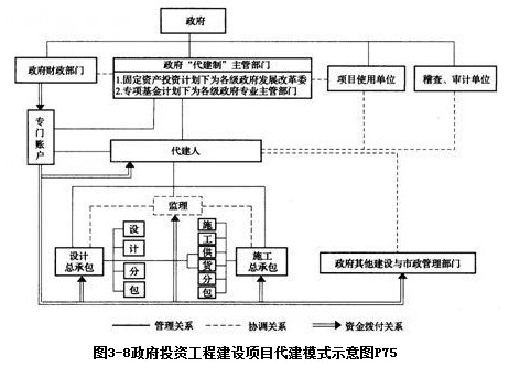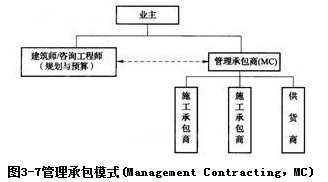 管理承包模式(MC)在國內(nèi)較典型的運(yùn)用就是目前廣泛施行的政府工程代建制,具體見圖3-8.