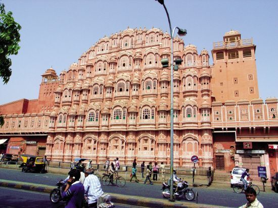 齋普爾位于印度西北部,只要看看這里用于建筑的玫瑰紅砂巖,就知道為什么拉賈斯坦邦的首都有“粉色之都”之稱(chēng)了。這些粉色砂巖的宮殿有大約1千多個(gè)窗戶(hù),供皇室女子觀看下面繁忙的集市。