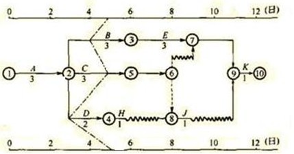1、已知時(shí)標(biāo)網(wǎng)絡(luò)計(jì)劃的前鋒線進(jìn)行實(shí)際進(jìn)度與計(jì)劃進(jìn)度比較圖如圖所示,則( ?。?/p>