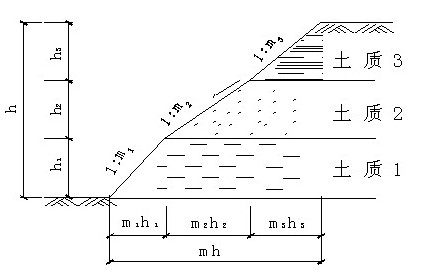 當(dāng)溝槽或基坑中土質(zhì)類別不同,且深度大于1.5m時,應(yīng)根據(jù)不同土質(zhì)類別的放坡系數(shù)、土質(zhì)厚度求得綜合放坡系數(shù),然后再求土方工程量。