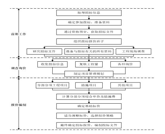 上述各項工作完成之后在確定每個子項單價的時候通常采用一定的報價策略,既可以提高中標的機率,又有利于中標后項目的順利實施。常用方法如下:不平衡報價法、多方案報價與增加備選方案報價策略、隨機應變策略、費用構成與盈利水平調整策略等。