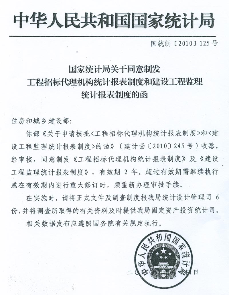 根據(jù)《國(guó)家統(tǒng)計(jì)局關(guān)于同意制發(fā)建設(shè)工程監(jiān)理統(tǒng)計(jì)報(bào)表制度的函》(國(guó)統(tǒng)制[2010]125號(hào)),為做好2011年建設(shè)工程監(jiān)理統(tǒng)計(jì)工作,現(xiàn)將有關(guān)事宜通知如下: