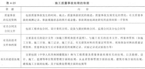 施工質(zhì)量事故處理的依據(jù)見表4—25.