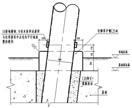 圖2-1 構(gòu)架人字柱柱腳保護帽詳圖