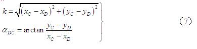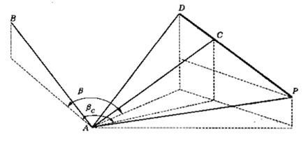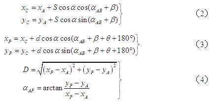 β —— 邊AC與已知邊AB的水平夾角,當(dāng)β和θ為右角時(shí),式(4)取“-β”和“-θ”。