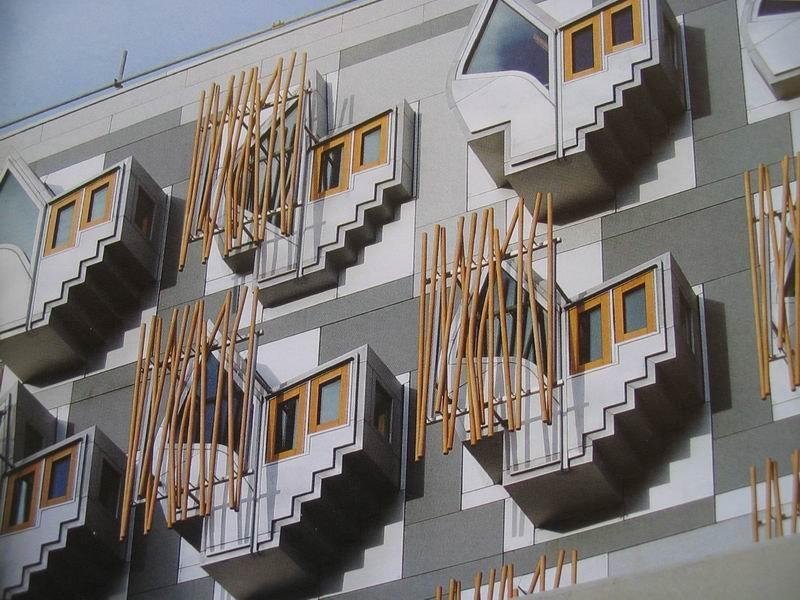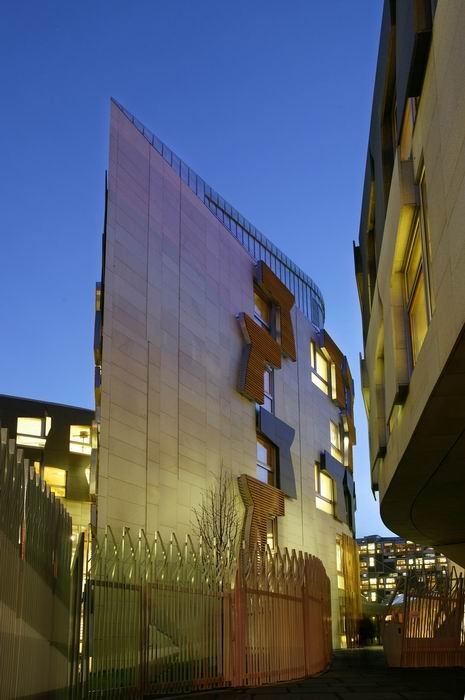 米拉萊斯,一個擁有驚人創(chuàng)造力的天才建筑師,可惜英年早逝。蘇格蘭議會大廈是他的遺作之一,也是他花費了大量精力特別重視的一個工程。他超出常人的對形式的把握能力在蘇格蘭議會大廈的項目中得到了最充分的體現(xiàn),他擁有加泰隆尼亞獨特而深刻的文化背景,并且通過一種奇妙的方式自然流露在他的建筑上。