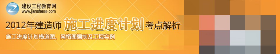 施工進(jìn)度計(jì)劃的編制既是“項(xiàng)目/施工管理”的考試重點(diǎn),在“管理與實(shí)務(wù)”考試中的重要性也不可小覷。建設(shè)工程教育網(wǎng)對(duì)2012年一/二級(jí)建造師施工進(jìn)度計(jì)劃的命題考點(diǎn)進(jìn)行了整理并加以解析,同時(shí)搜羅了相關(guān)典型例題供各位考友練習(xí)鞏固。除此之外,附上施工進(jìn)度計(jì)劃?rùn)M道圖、網(wǎng)絡(luò)圖編制的常用軟件及工程實(shí)例,希望能為大家?guī)?lái)幫助,使理論與實(shí)踐得以同生共長(zhǎng)。