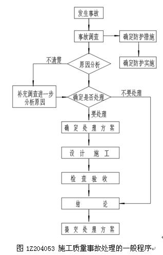 施工質(zhì)量事故處理的一般程序見圖1Z204053.