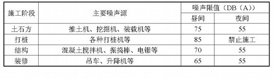 不同施工階段作業(yè)噪聲限值: