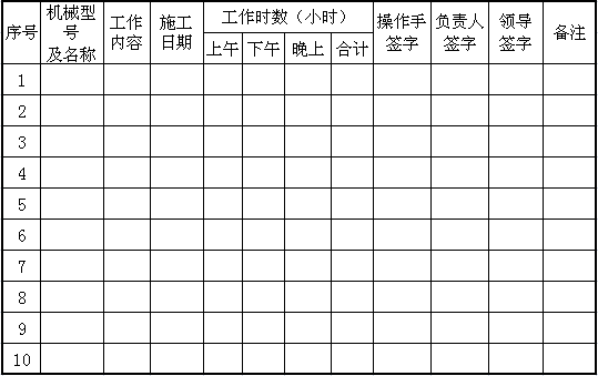 機(jī)械臺(tái)班統(tǒng)計(jì)表
