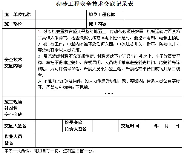 詳情請下載附件砌磚工程安全技術(shù)交底記錄表