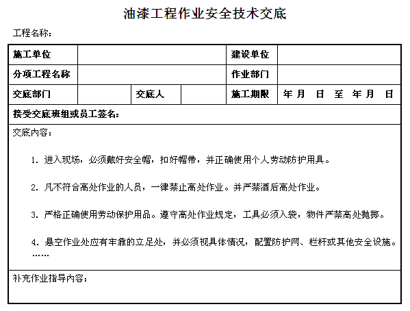 油漆工程作業(yè)安全技術(shù)交底