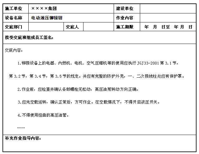電動(dòng)液壓鉚接鉗安全操作規(guī)程技術(shù)交底