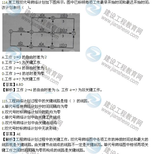 【解析】橫道圖的缺點:不能明確地反映出各項工作之間錯綜復(fù)雜的相互關(guān)系;不能明確地反映出影響工期關(guān)鍵工作和關(guān)鍵線路;不能明確反映出工作所具有的機動時間;不能反映工程費用與工期之間的關(guān)系。參見教材P12。