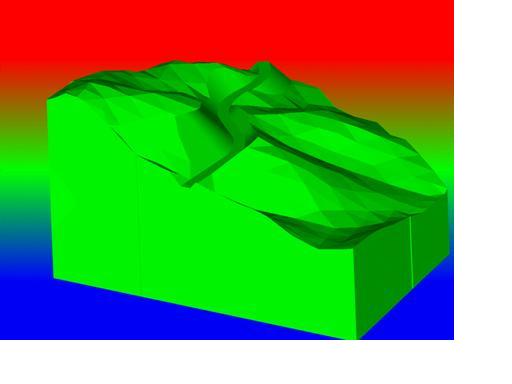 采用三維實體技術(shù)由于在應(yīng)用過程中要使用大量布爾運算,對機器的性能要求高,難于對大范圍地形生成實體。對開挖體的制作由于AutCAD軟件本身的局限難于通過編程手段生成復(fù)雜開挖體。開挖過程往往與地質(zhì)情況有關(guān),如何將地質(zhì)信息放入地面模型中達到分層開挖的計算還要做進一步探討。
