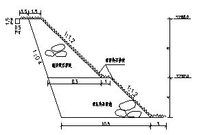 計算結(jié)果:t=0.05m=5cm,考慮到坡面變形,水流沖刷及施工因素,從構(gòu)造上要求,砼護(hù)坡的厚度不宜小于10cm,本工程模袋砼護(hù)坡厚度取t=15cm。