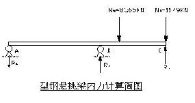一般陽臺的檐口梁的截面較小,在采用懸挑式的型鋼布置情況下,根據(jù)懸挑梁的受力特點(如下圖),在檐口梁處的承受壓力較大。按24m高的懸挑架來計算,一般在檐口梁處承受一根懸挑