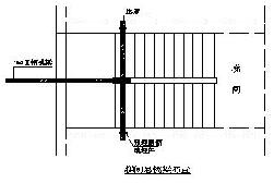 型鋼懸挑梁布置時遇梯間地段時,可采取陽臺處的懸挑梁的上拉鋼絲繩方法(類似上圖所示),或采用內(nèi)置橫壓梁方法,橫壓梁擱置在梯間的兩側(cè)框架梁上,采用預埋件固定(在磚混結(jié)構(gòu)中不得磚砌體壓重壓梁)。如下圖所示。因壓梁布置在樓梯間處,因此需做好安全警示,鋪設好人員上下踏步,以保證人員上下的安全。