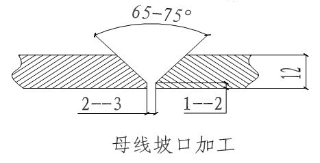 用電動工具及板銼打磨坡口,尺寸要求見下圖,并用電動拋光機將母線坡口兩側(cè)表面各50mm范圍內(nèi)清刷干凈,不得有氧化膜、水分和油污,坡口加工面應(yīng)無毛刺和飛邊。