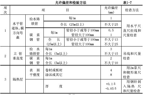 4.3給水管道安裝的允許偏差和檢驗方法見表l-7。