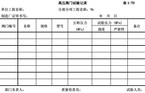 3.12.2.12試驗(yàn)合格的閥門,應(yīng)及時(shí)排盡內(nèi)部積水,密封面應(yīng)涂防銹油(需脫脂的閥門除外),關(guān)閉閥門,封閉出入口。高壓閥門應(yīng)填寫“高壓閥門試驗(yàn)記錄”(表1-70)!
