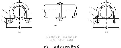 根據(jù)管道支架的作用、性能要求的不同,結(jié)構(gòu)形式可分固定支架、活動(dòng)(或稱滑動(dòng))支架和吊架等,并隨管道保溫和不保溫的要求,又有保溫支架和不保溫的支架(見圖2)。