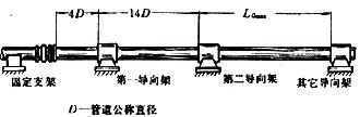在管段兩個(gè)固定管架之間,不要安裝一個(gè)以上的軸向型補(bǔ)償器,固定管架和導(dǎo)向管架的分布按圖1-40確定。