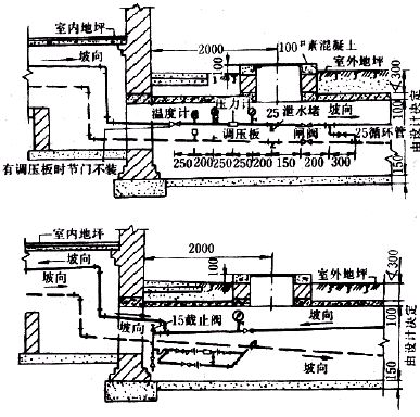 3.5室外熱水及蒸汽干管入口作法見圖1-44