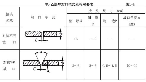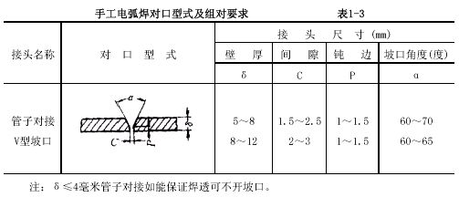3.2.3.3一般管道的焊接為對(duì)口型式及組對(duì),如設(shè)計(jì)無(wú)要求,電焊應(yīng)符合表1-3的規(guī)定,氣焊應(yīng)符合表1-4的規(guī)定。