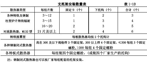 3.6.2.9各種散熱器的支托架安裝數(shù)量應(yīng)符合表l-13的要求。