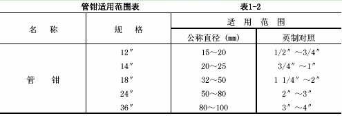 2.2.2 具:套絲板、圓絲板、管鉗、鏈鉗、活扳子、手鋸、手錘、大錘、鏨子、捻鑿、麻釬、螺絲板、壓力案、臺(tái)虎鉗、克絲鉗、改錐、氣焊工具等。