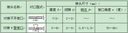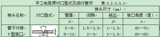 手工電弧焊對口型式及組對要求表3.2.3.3.1