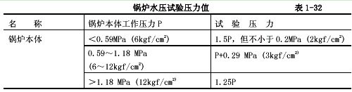 3.1.14.5鍋爐水壓試驗的壓力規(guī)定見表1-32。