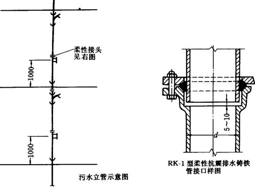 3.5.6高層建筑考慮管道脹縮補(bǔ)償,可采用法蘭柔性管件(圖3.5.6),但在承插口處要留出脹縮補(bǔ)償余量。