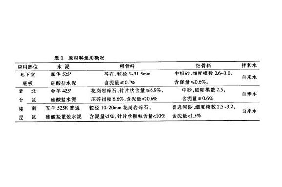 選用優(yōu)質(zhì)的原材料,如底板施工中采用連續(xù)級配骨料,增大混凝土的密實度。嚴格控制混凝土出機和人泵坍落度,隨不同施工階段的設(shè)計要求與天氣變化情況跟蹤調(diào)整配合比,詳見表1。