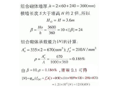 組合砌體承載能力的計(jì)算: