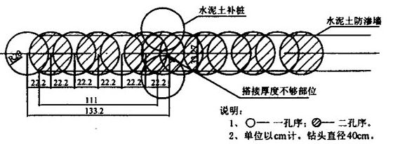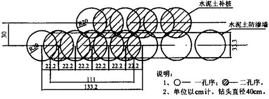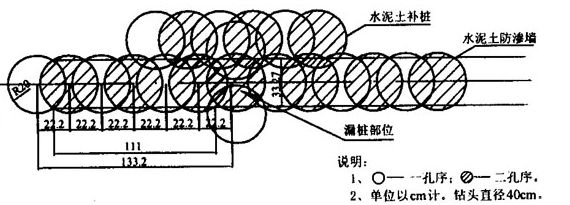 圖6水泥土防滲墻塔接示意圖(漏樁)