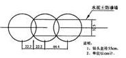 圖1水泥土防滲墻孔位、樁距布置示意圖(多頭二次成墻)