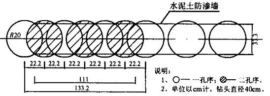 圖5水泥土防滲墻塔接示意圖(塔接厚度不夠)