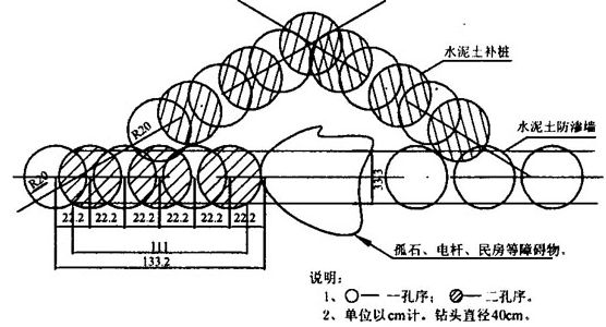 圖4水泥土防滲墻塔接示意圖(3cm以下有孤石等障礙物)