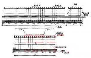 搭立支架前將地面用推土機推平,用25t振動碾碾壓6遍:先靜壓1遍,再弱碾1遍,強振2遍,隨后弱振1遍、靜壓1遍。碾壓范圍為:縱向與同一聯(lián)梁長度相同,寬度為支架垂直投影范圍每邊加寬2m。碾壓后進(jìn)行靜載檢測,地基承載力達(dá)到216kPa,而全聯(lián)混凝土量為386m3,重10049kN,加上支架、模板、施工人員及機具等荷載共計12059.1kN,承壓面積150m2,則地基平均壓應(yīng)力為80.3kPa,小于地基承載力。承載力富余較多,能有效地控制地基的彈性變形。碾壓時注意地面是否有反彈現(xiàn)象,有則換填灰土。地基平整時做成0.5%單面坡,在低的一側(cè)挖排水溝,以利下雨時排水,避免雨水浸泡地基。