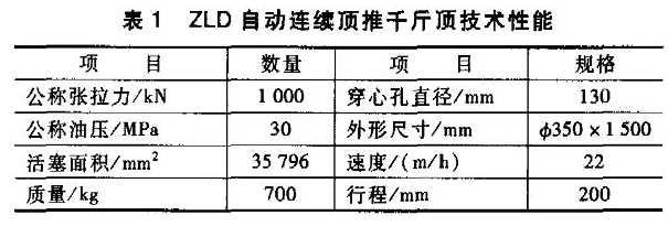 (1)頂推千斤頂箱梁頂推施工時,在橋臺臺頂處設(shè)置牽拉固定裝置,使用2臺ZLD自動連續(xù)頂推千斤頂通過鋼索牽拉箱梁尾端的后導(dǎo)梁,對箱梁進(jìn)行連續(xù)頂進(jìn)直至最后就位。牽拉過程中設(shè)置制動措施,防止箱梁在下坡牽拉時走行過快。ZLD自動連續(xù)頂推千斤頂?shù)募夹g(shù)性能見表1。