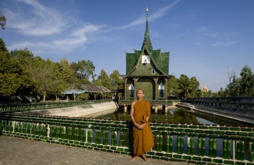 一座位于泰國和柬埔寨邊界的寺廟里的僧侶歷時20余年,用上百萬個玻璃啤酒瓶建起了他們的廟宇。