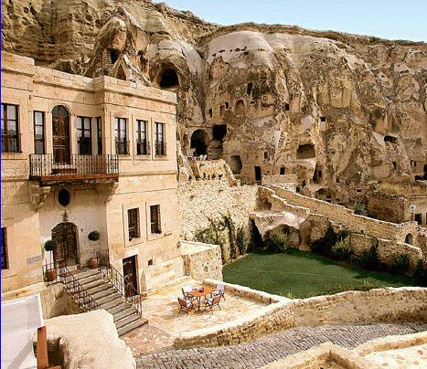 洞穴旅館: 土耳其卡巴多基亞懸崖絕壁,2000多年前,就有部族避亂隱居于此,利用天然熔巖洞改造成為隱居者理想的住所。如今,這里已經(jīng)被重新改造,成為當(dāng)?shù)刂?ldquo;洞穴旅館”。它是一座由巖穴組成很多獨(dú)立房間的洞穴旅館。完整保留當(dāng)?shù)匚幕厣恼w規(guī)劃設(shè)計,絕對最大程度上保證個人隱私。