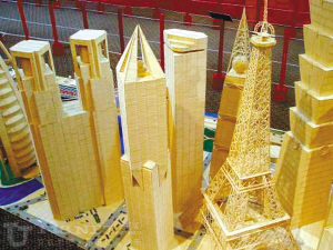 據(jù)悉,斯坦制作每件著名建筑模型之前,首先從因特網(wǎng)上下載該建筑物的技術(shù)圖紙和衛(wèi)星照片,盡可能多地收集相關(guān)資料。然后,他會(huì)花費(fèi)大量時(shí)間研究該建筑的內(nèi)部構(gòu)造和外觀設(shè)計(jì)。最后,再按照1∶164的比例,利用牙簽精心搭建仿真模型。斯坦的牙簽建筑內(nèi)部基本中空,只有少數(shù)需要結(jié)構(gòu)性的支撐物。他所使用的材料不外乎兩樣,普通粘合劑和批發(fā)來的牙簽。