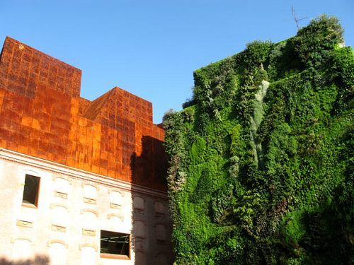 布蘭克為西班牙設(shè)計了第一座垂直花園。這座花園被鋪設(shè)于馬德里文化中心(CaixaForum Madrid)正對入口處的一處圍墻上