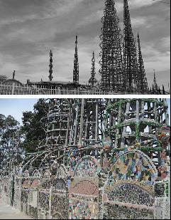 華茲塔位于美國洛杉磯,是一位叫做西蒙·羅迪阿的意大利移民,從1921年到1955年,花了30多年的時間斷斷續(xù)續(xù)所筑成的。塔內(nèi)有涼亭、噴泉以及其它配套的建筑,高達100英尺。建筑材料由貝殼、廢金屬、陶器碎片、石頭和玻璃等,這些幾乎都是他隨意找到的材料?偟膩碚f,他用鋼鐵、水泥、砂漿和絲網(wǎng)等,在沒有使用腳手架的情況下,創(chuàng)造性的把華茲塔展現(xiàn)在了人們的眼前。這座摩天建筑結(jié)構(gòu)獨特,壯麗雄偉,令人贊嘆。華茲塔已被列為聯(lián)合國國家歷史地標,這座標志性建筑充滿著震撼力,每年都有成千上萬的人到此參觀。不論從哪一方面來看,這座塔都可以說是超越了絕對建筑法則而存在的藝術(shù)作品。