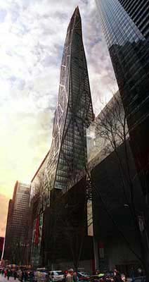 從1973年至今,高1730英尺(約合527米)的芝加哥希爾斯大廈一直獨享北美地區(qū)第一高樓的頭銜。然而,在設計環(huán)保的芝加哥螺旋塔竣工后,它將以300英尺之差將這一頭銜拱手讓出。芝加哥螺旋塔的設計師是著名建筑師圣地亞哥?卡拉特拉瓦(Santiago Calatrava),2004年雅典奧運會主場館和瑞典HSB旋轉中心都出自這位建筑大師之手?ɡ乩叩哪繕耸墙o芝加哥這座城市奪回一座獎杯:國際綠色建筑認證“領先能源與環(huán)境設計”(LEED)金獎。