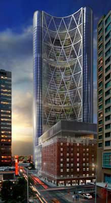 “弓”(The Bow)這一名稱來自于該建筑獨一無二的曲線造型。竣工后,它將成為卡爾加里市第一座鋼結構摩天大樓,這種結構意味著“弓”所用的建筑材料將大大減少,因為鋼構架消除了在承重墻體上建大量更為虛弱的支撐的需要。另外,它還將是卡爾加里市最高的建筑,福斯特建筑事務所的設計團隊會把它打造成為一座環(huán)保、可持續(xù)性建筑。