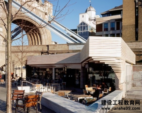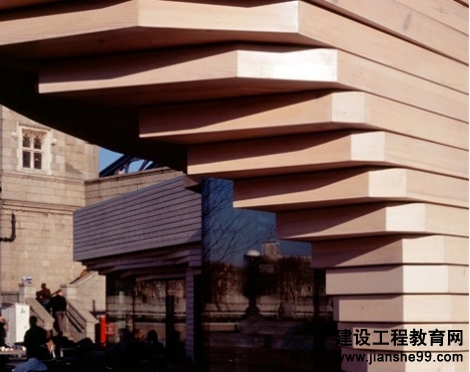 另外一個就是用鈣化變白的木材建造的,具有屋頂綠化,并提供了觀看倫敦最好的視野的場地。即使他們似乎很不起眼,卻非常受歡迎。這些休息亭,實際上比看上去要大,其中兩個“隱藏”地,兩個地下通風(fēng)豎井和一個擦窗機的停車場。